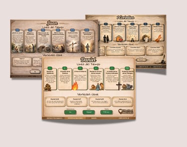 Una colección visual y resumida de las historias más poderosas del Antiguo y Nuevo Testamento, ideal para enseñar a niños y adultos en casa o en la iglesia.